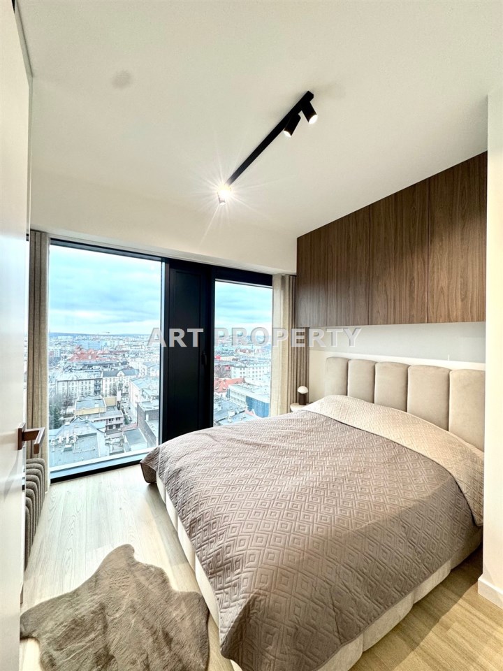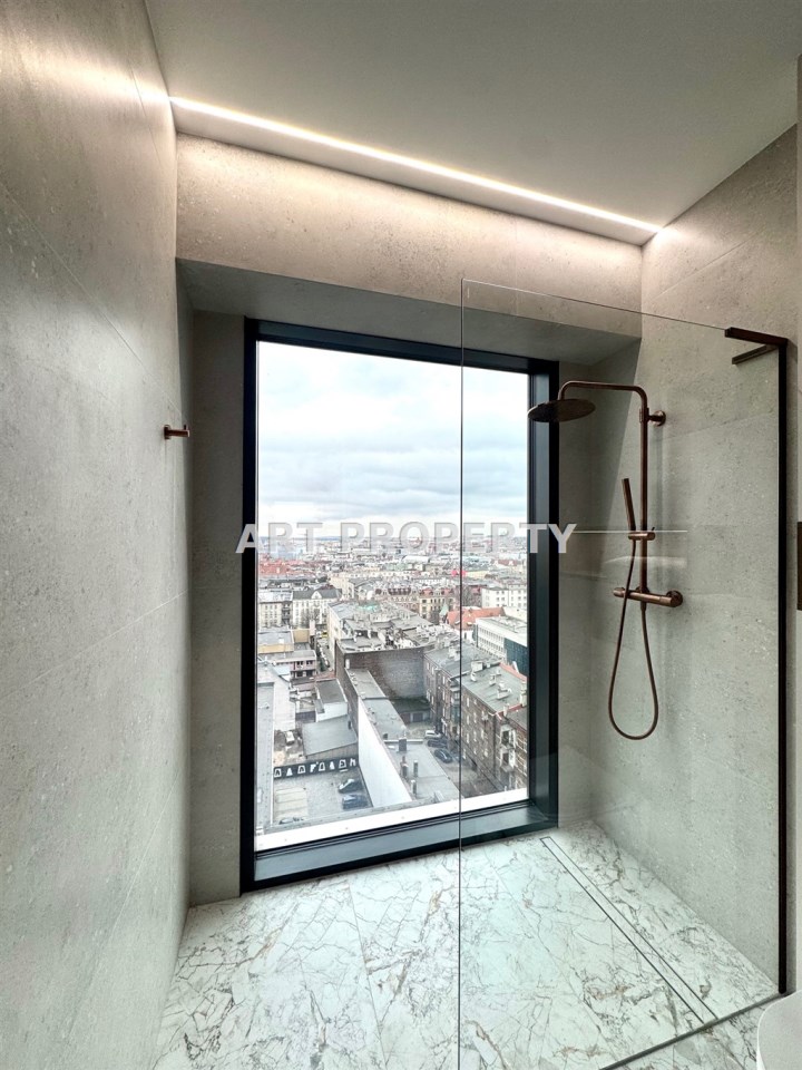 Mieszkanie o powierzchni 43,3 m², położone na 14 piętrze nowoczesnego budynku z szybkobieżnymi windami, posiada balkon z widokiem na centrum miasta- ekspozycja wschodnia.