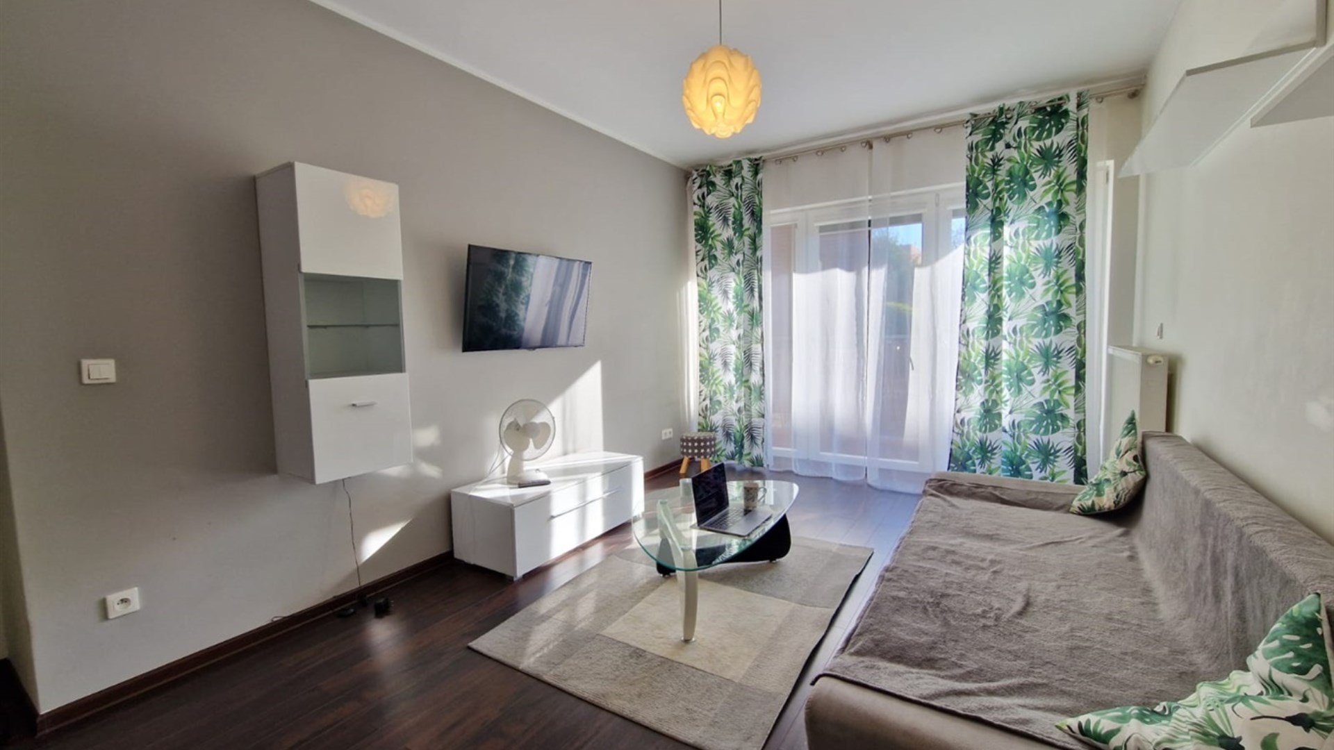 * przestronnego salonu z wyjściem na balkon (ekspozycja wschodnia) z wyposażonym aneksem kuchennym (zabudowany sprzęt agd - zmywarka, lodówka, okap, piekarnik itd.),