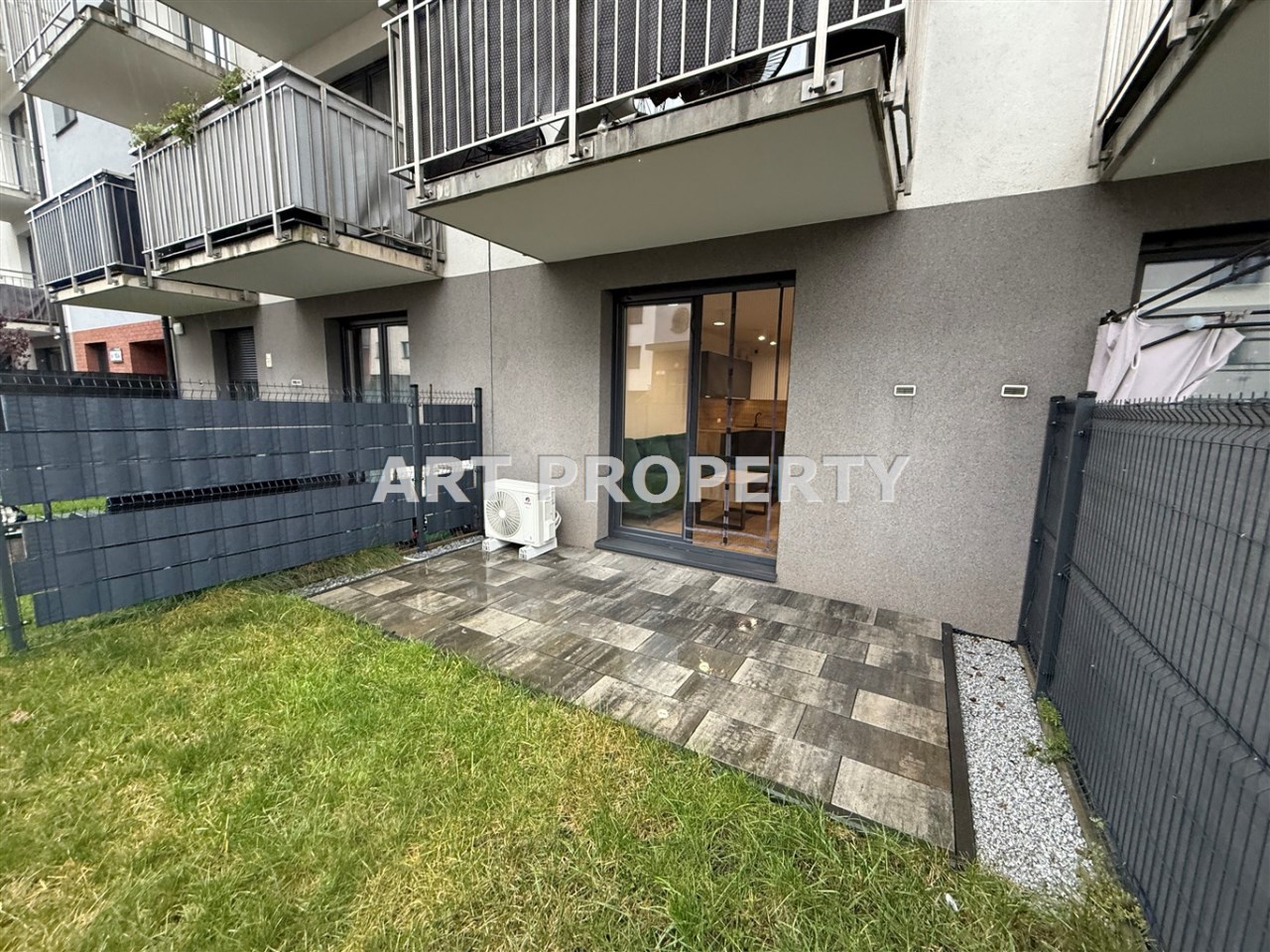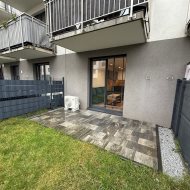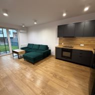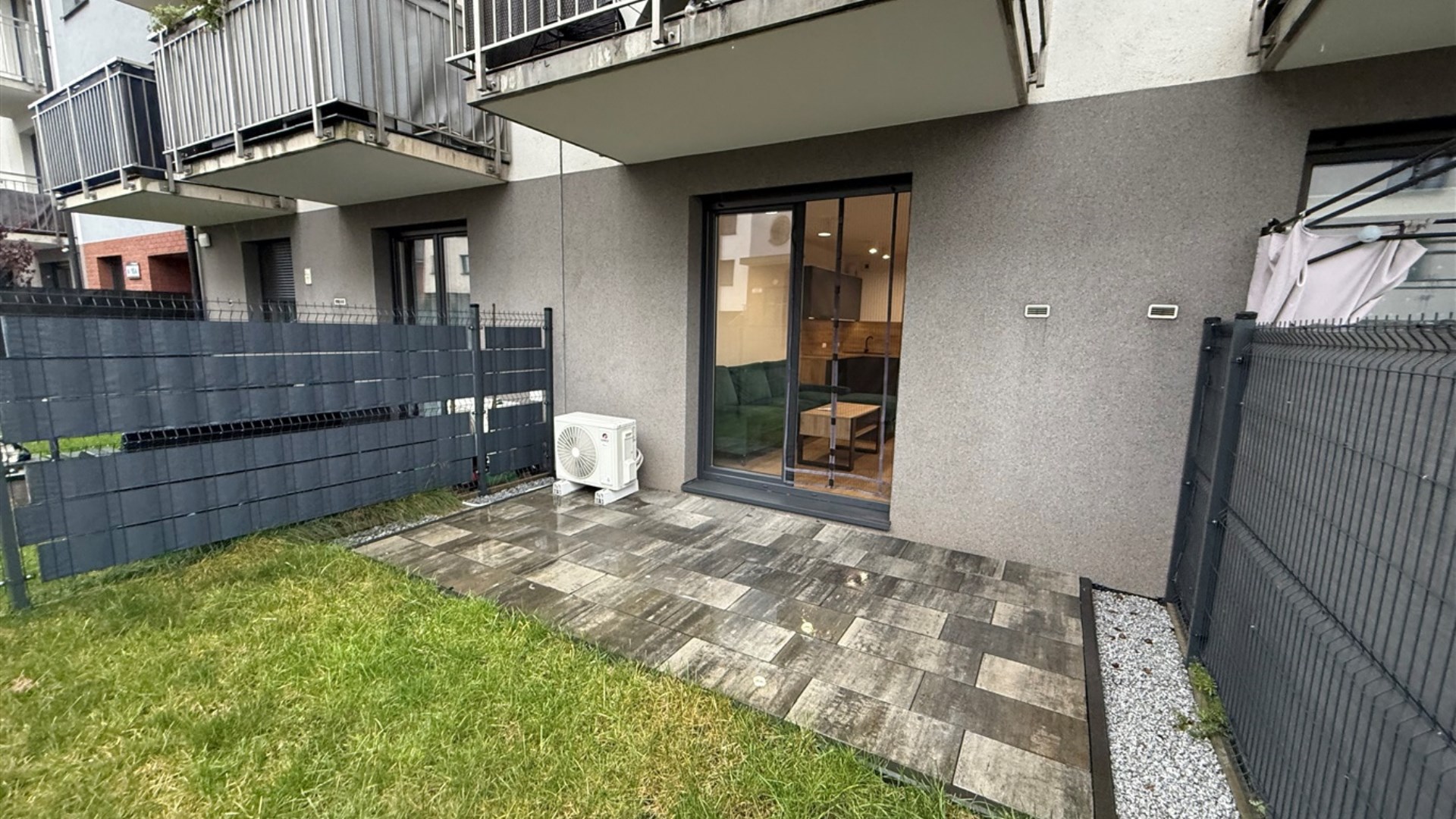 * słoneczny, przestronny i umeblowany salon (ekspozycja południowa) wyposażony w klimatyzacje z wyjściem na ogródek z wybrukowaną częścią tarasową
