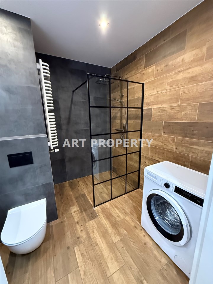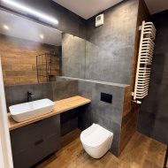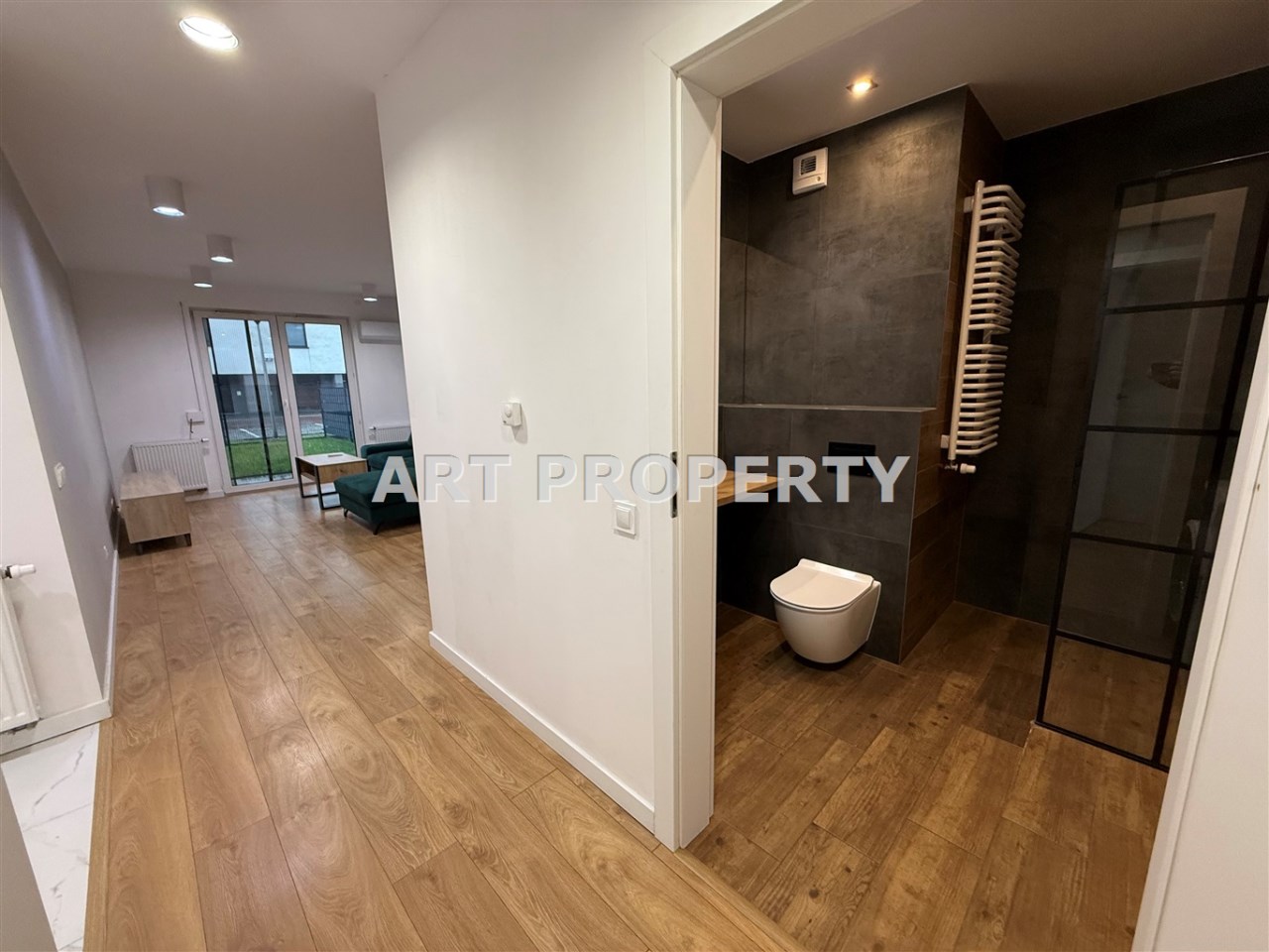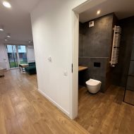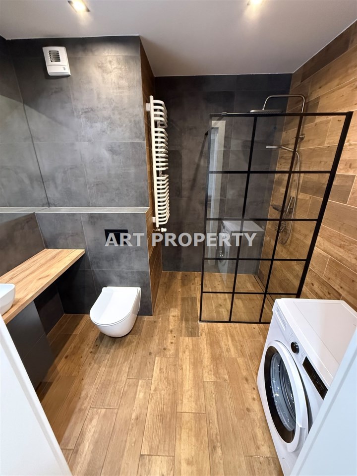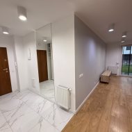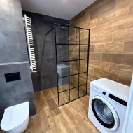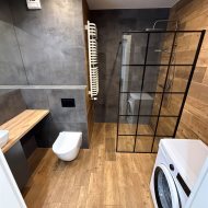 * przedpokój z dużą zabudowaną szafą trzyskrzydłową * łazienka z kabiną prysznicową z toaletą oraz pralką