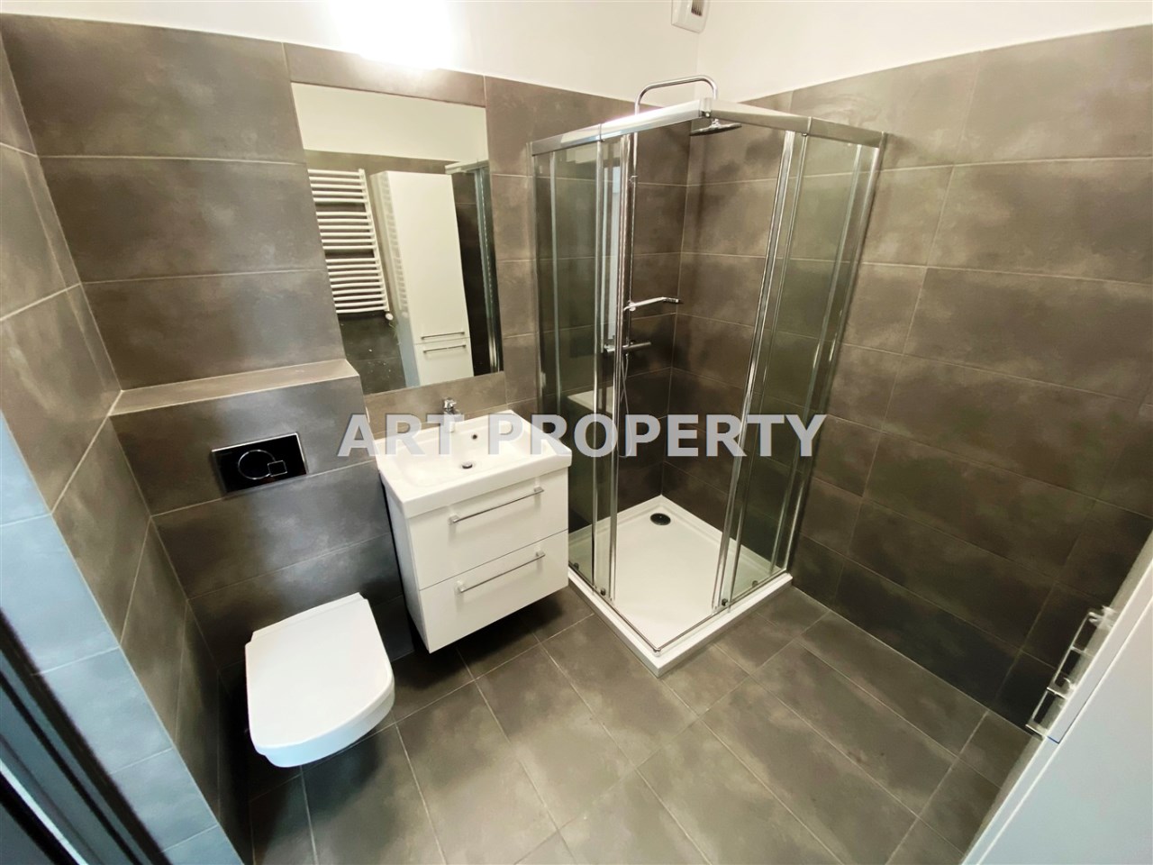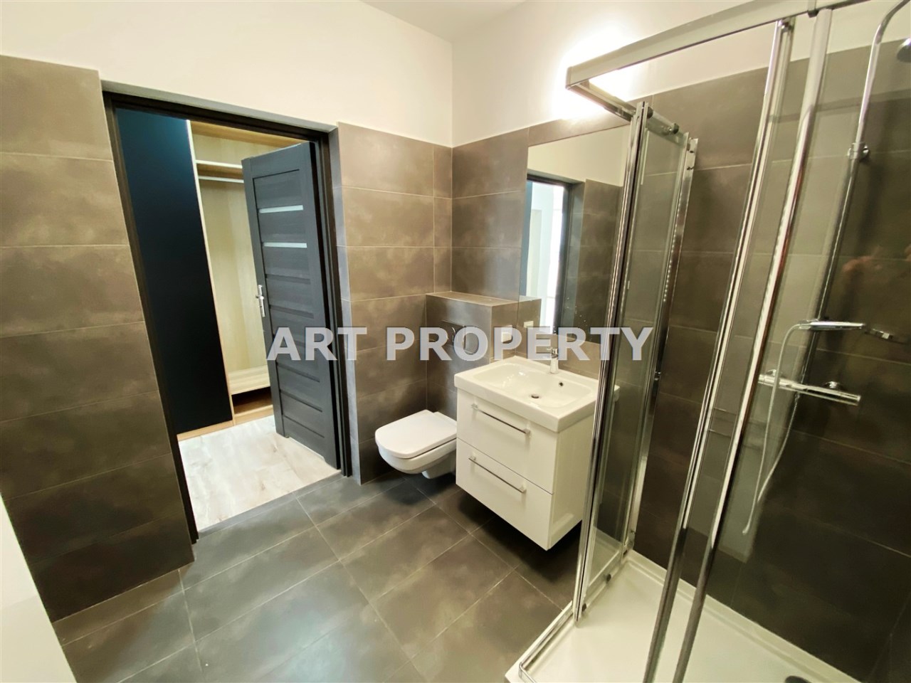 W mieszkaniu w przedpokoju zabudowana duża szafa, pełna zabudowa w kuchni z dużym blatem wraz z kompletem sprzętu agd (zmywarka, lodówka, kuchenka elektryczna. W łazience kabina prysznicowa.