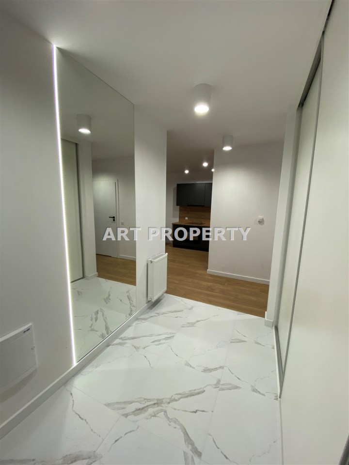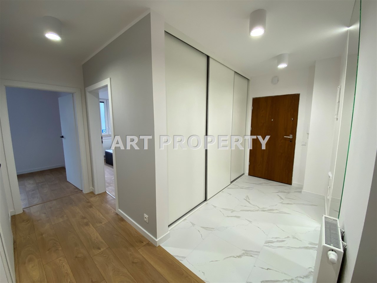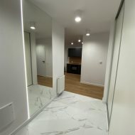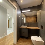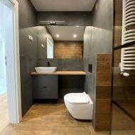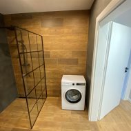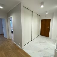 * przedpokój z dużą zabudowaną szafą trzyskrzydłową * łazienka z kabiną prysznicową z toaletą oraz pralką