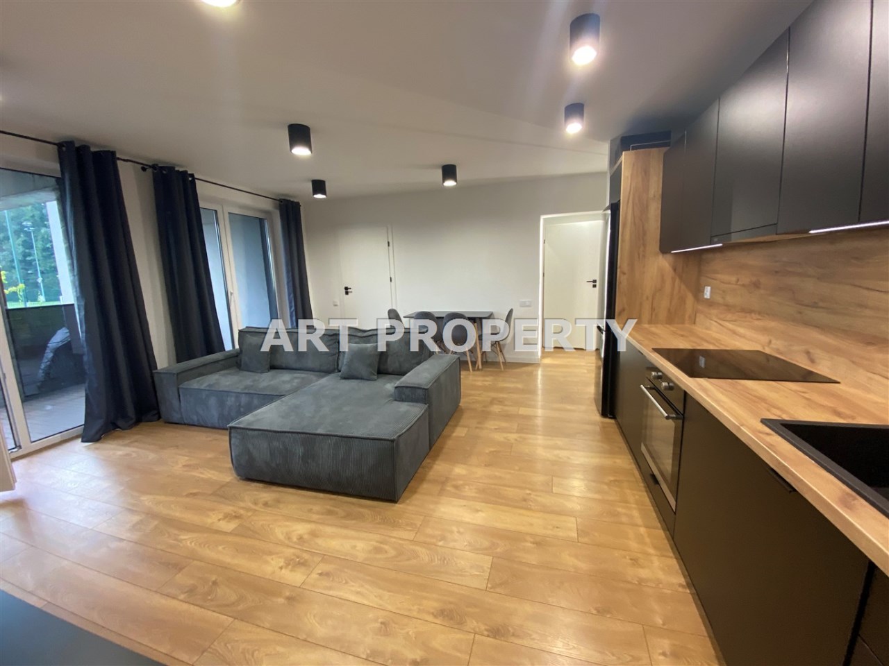 Mieszkanie w pełni umeblowane i wyposażone w zabudowę kuchenną wraz ze sprzętem AGD, szafy w zabudowie, meble wolnostojące w salonie i sypialni.