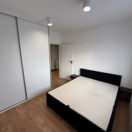* sypialnia z łóżkiem małżeńskim oraz szafą zabudowaną