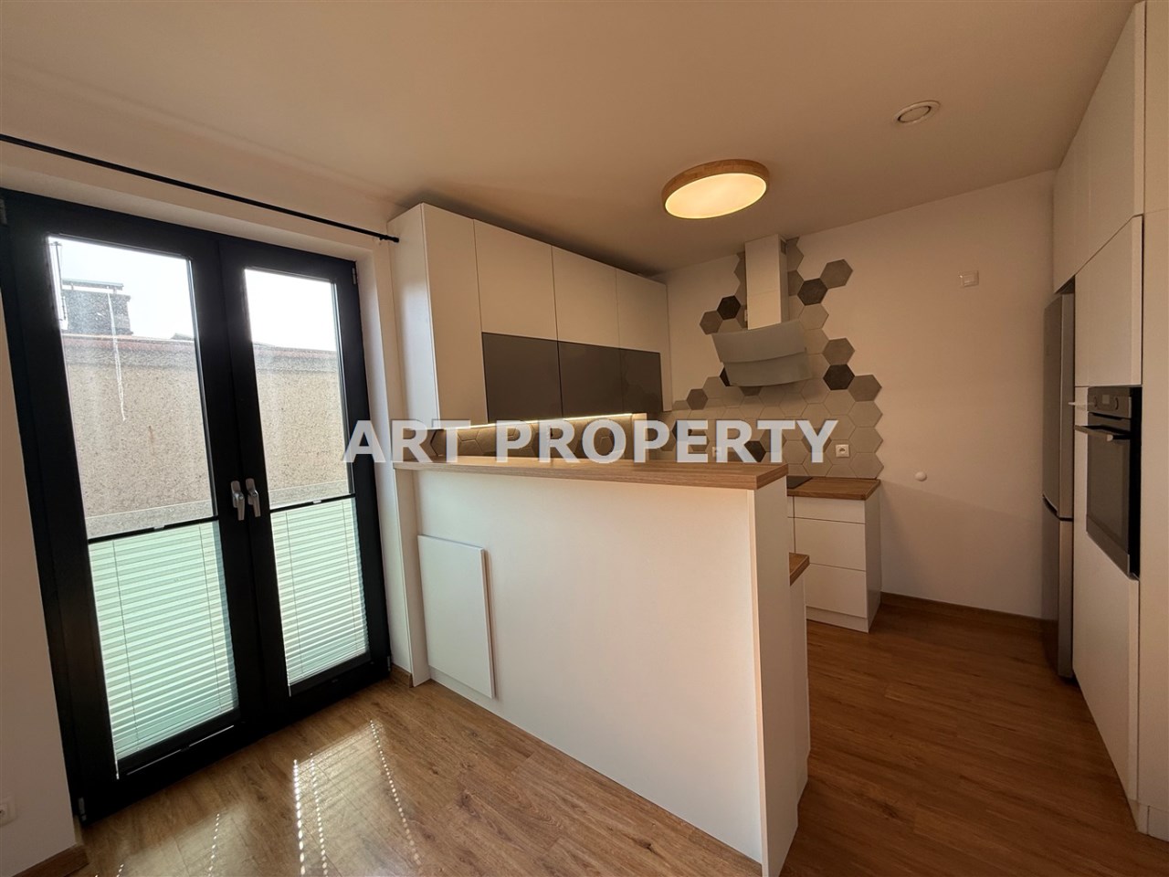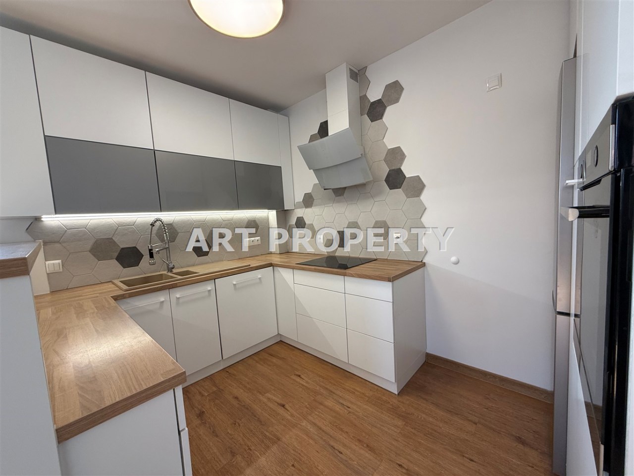 * przestronny salon z aneksem kuchennym (w pełni wyposażona kuchnia w sprzęty agd w zabudowie m.in. zmywarka, lodówka, okap, płyta grzewcza itd.)